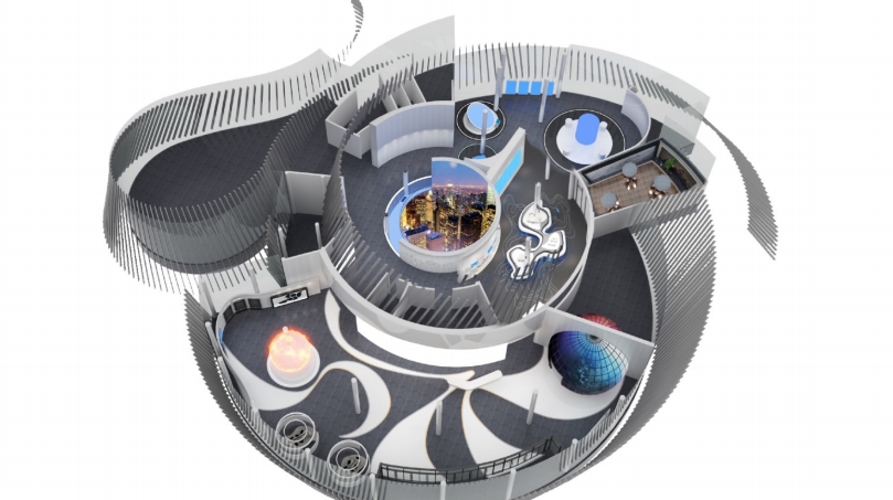 展廳設計之初,金螳螂文化的設計團隊充分解讀建筑設計語言,依據建筑螺旋式形態進行展示布局劃分,解決了異形形態建筑柱子過多、影響參觀流線的難題。將建筑中“力”的匯聚點與展陳內容的“核”——數字沙盤匯聚于一點,形成“數據之眼”。